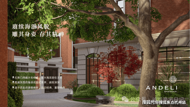 海派风貌:外立面采用海派里弄经典的红砖、石库门元素与现代极简设计相结合,保留老虎窗、过街楼等历史符号,传承海派文化。