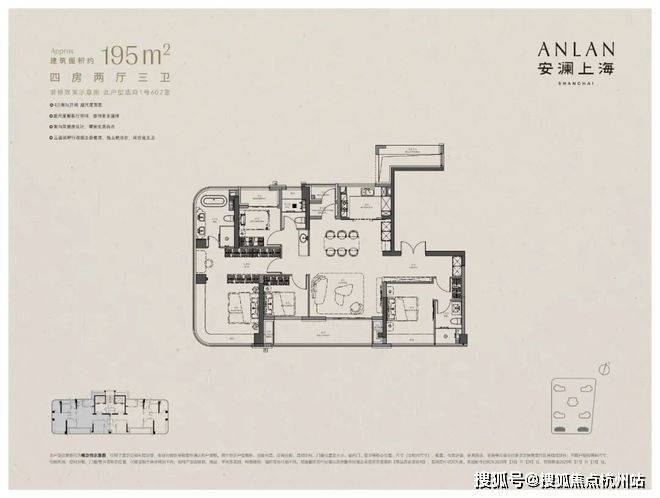 首先,不夸张的讲,✅✅安澜上海售楼处电话:400-9966-224✅✅建面约280㎡是我至今看过顶豪界最完美的四面宽全景舱户型。