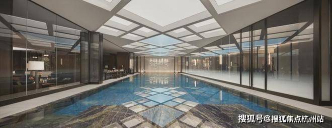 约1400㎡下沉式高奢会所,配备恒温泳池、健身房、瑜伽室等多功能空间,满足会客、运动、休闲等多元需求。