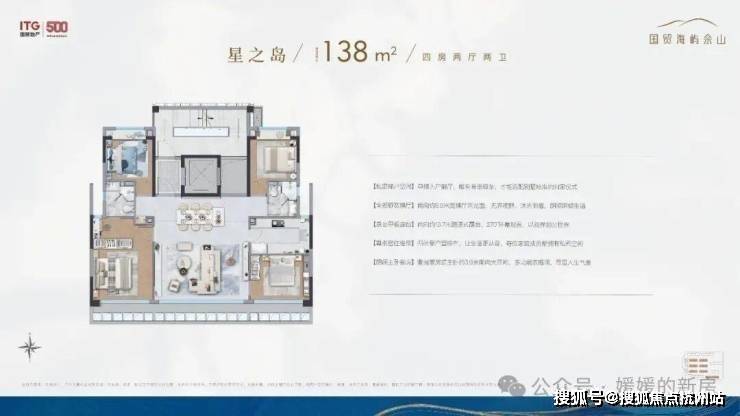 户型信息:在售户型有建面约110㎡三房两厅两卫(洋房)、135㎡四房两厅两卫(洋房)、160㎡四房两厅三卫(叠拼)及190㎡五房两厅三卫(叠拼),全部采用国贸高端精装标准交付,洋房实得率最高达86%,叠拼产品配备独立庭院与星空露台。