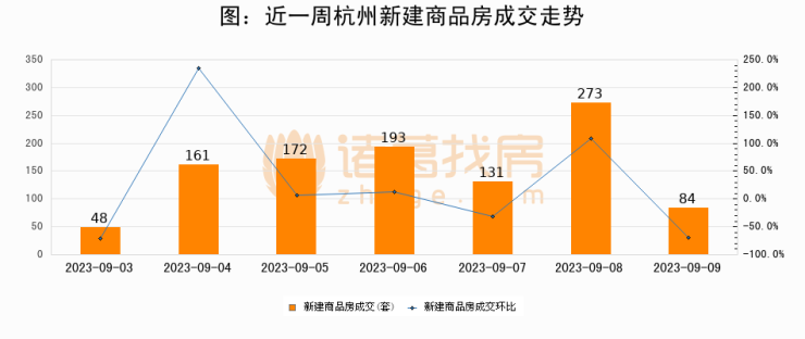 【杭州成交日报】09月09日新房成交84套、二手房119套;涨价房源33套