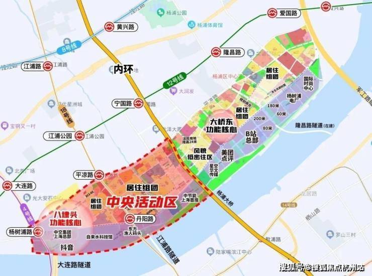 大桥东功能核心汇聚了杨浦滨江更多的超高层建筑群,拥有美团、哔哩哔哩、星空华文传媒总部、国际时尚中心、杨树浦电厂旧改项目等地标产业&建筑。