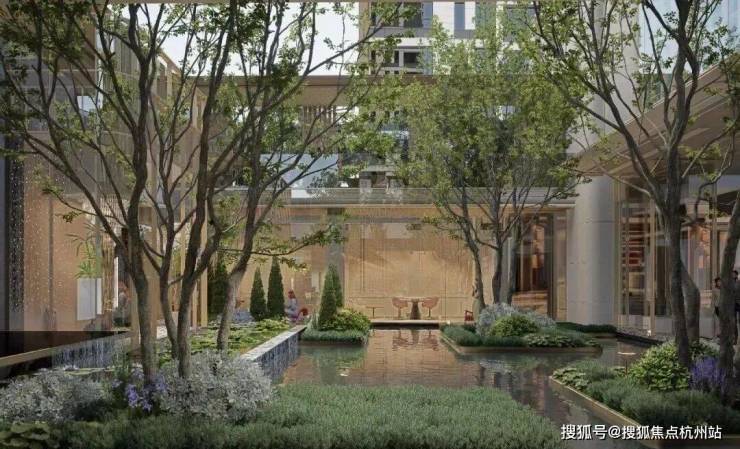 向城市让渡一些开放空间,以前街后河、约12000m滨水公园(代建)等一体化柔性边界,打造「外揽城市绿肺,内藏森境天地」公园住区,让繁华都市与静谧生活自然过渡。