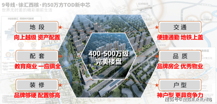 9号线泗泾站地铁上盖,步行进站后9站直达徐家汇,约50万方的TOD,自带约18.5万方的花园城商业,周边还有九年一贯制学校+高端医学中心重磅加持……