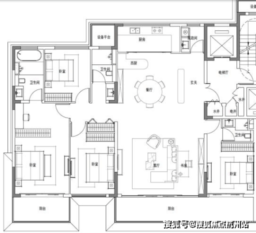 7#东边户,四房两厅三卫,独立家政间,南面双阳台。