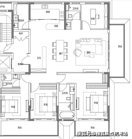 7#西边户,南北大通厅,带独立家政间。