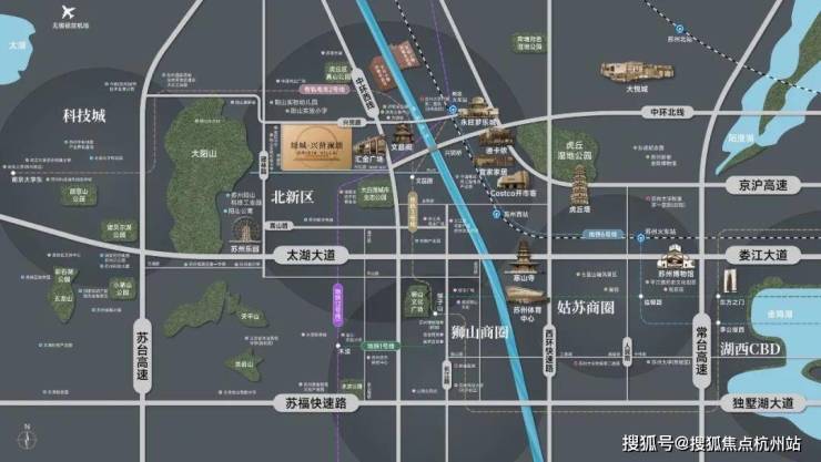 项目落位新区城市北中心——浒墅关,大阳山东、京杭运河西,板块最适宜诞生别墅区域,一轴一心生态区旁,拥抱天赋自然生态与丰盈历史人脉,打造板块“近15年唯一低密墅区”。