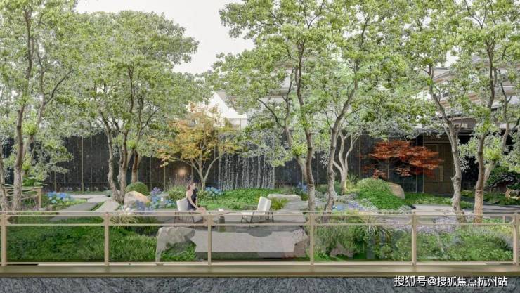 3纵中心花园:分布联排建筑组团中的3纵景观步道,打造中式园境,让归家成为一场穿越风景的旅行
