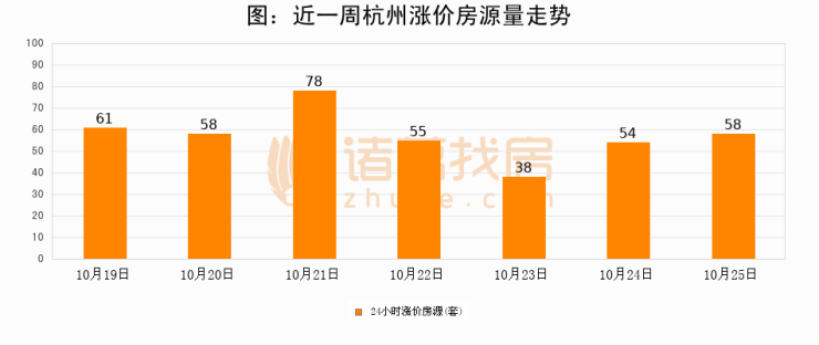 根据诸葛找房数据显示,杭州24小时涨价房源量为58套,较10月24日增加4套,环比上涨7.4%。与此同时,涨价房源占比小幅扩大,业主信心有所提升。