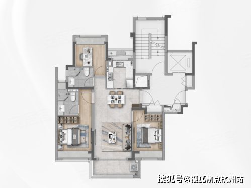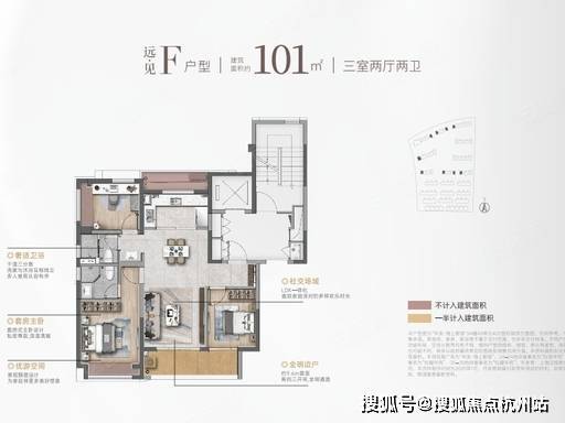 主力建面约87-102㎡三房两厅两卫,精装标准约 4000 元 /㎡,配备地暖、中央空调、新风系统三大件,厨卫采用一线品牌。