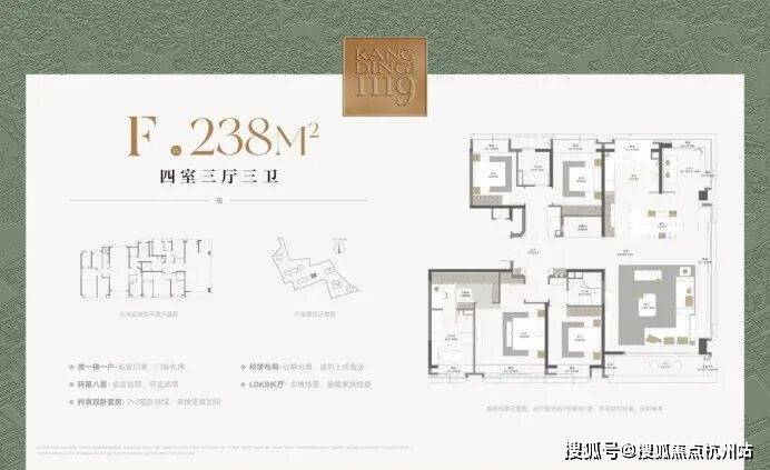 主力建面约 177-238㎡ 3-4 房,一梯一户、私梯厅入户,得房率超 80%,空间尺度碾压同级。