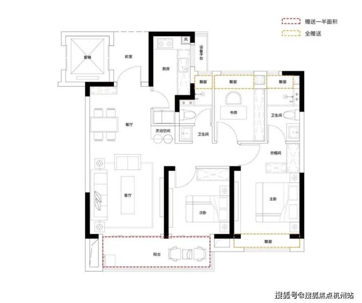 灵动空间:餐厅预留空间,可设计吧台亦或工作区,开放设计,百变生活
