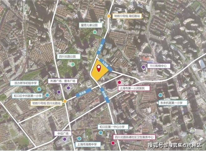 项目位于虹口内环内的嘉兴社区,就在第一人民医院北侧,南侧约200米就是北外滩,北侧即为瑞虹新城,项目直线距10号线四川北路站约400米,是今年虹口区非常重要的一个新房供应。