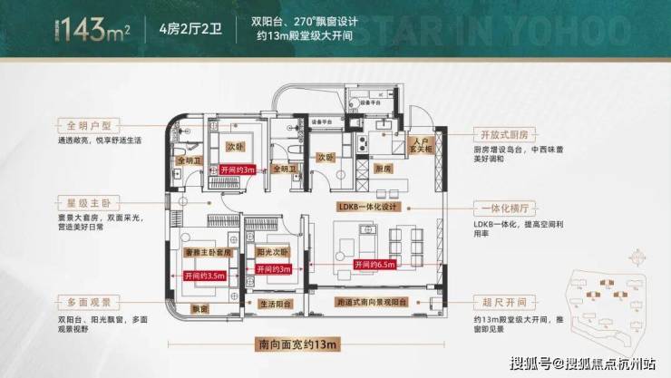 约115-143㎡全系户型均搭载超阔南向面宽、LDKB一体化方厅,约143㎡王牌户型更是以270°环幕观景主卧,将玉湖盛景融入日常生活。