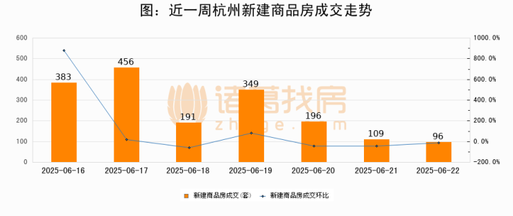 【杭州成交日报】06月22日新房成交96套、二手房203套;涨价房源22套