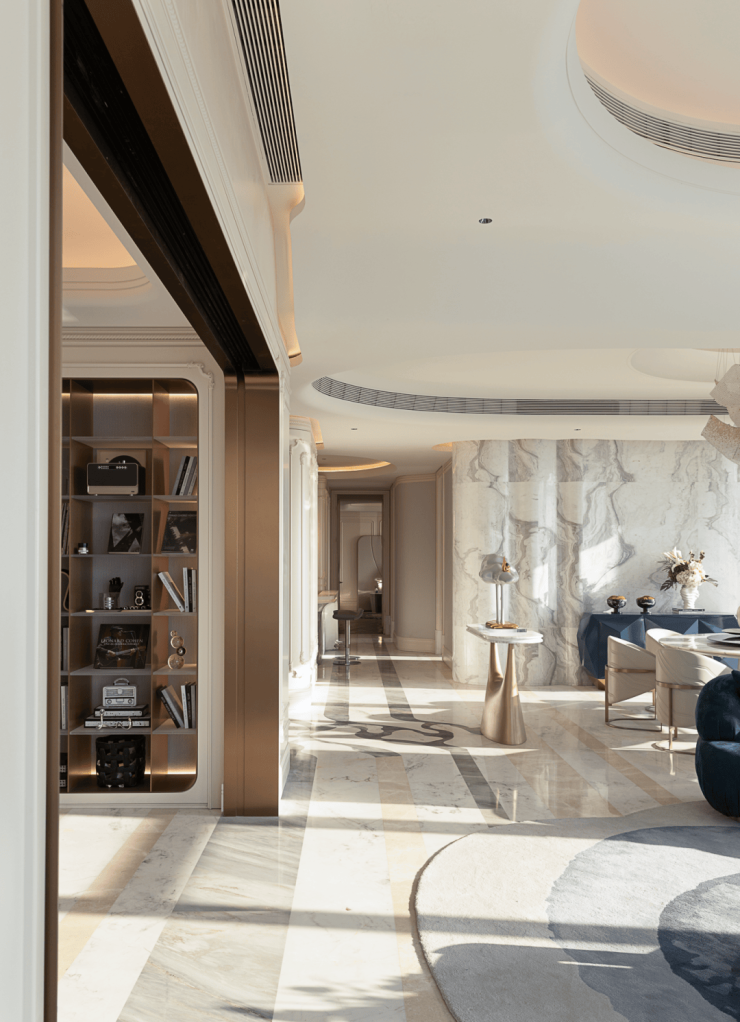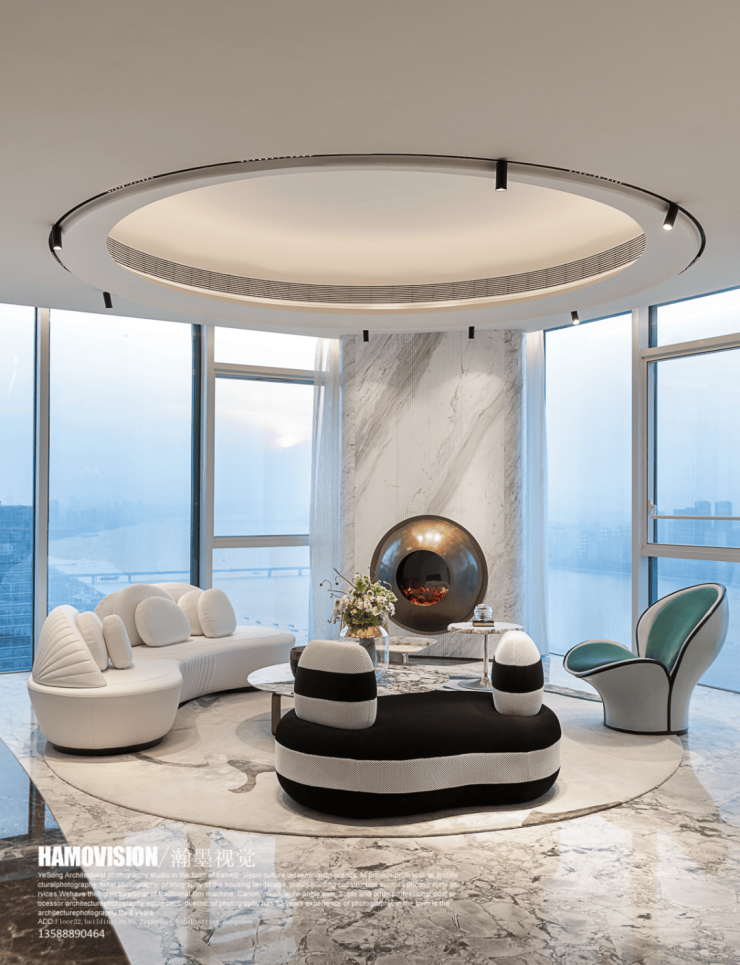 设计师在这处空间中,展现出了非凡的创意与匠心。他巧妙地打破了传统空间的束缚,让动线不再受限,居住者可以自由地穿梭于各个区域之间。这种设计不仅让空间显得更加灵动与开阔,更将奢华豪邸应有的华贵气度,毫无保留地融入到了每一个细节之中。