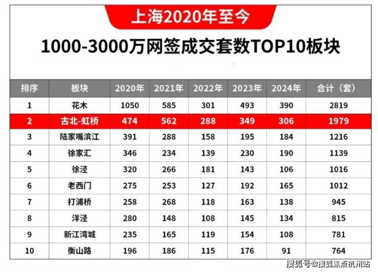 数据显示,2020年至今,上海1000-3000万价格段的二手房网签成交量中,古北连续5年高居全市第二,仅次于面积和楼市体量都远超古北的花木板块!