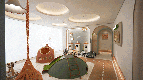 地上空间的美学感受随着车行归家动线也延伸到了地下,招商序的地下车库,不仅精装交付,还提出了 “中央车站”的 概念。