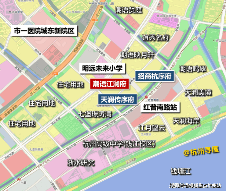 周边以次新小区、学校为主,城市界面较新,居住环境还不错,距离潮语江澜府约500米处的滨江天澜海岸目前挂牌价约6万/㎡左右。