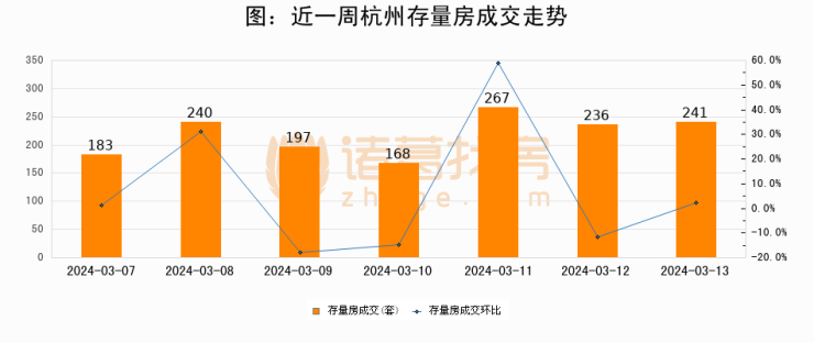 【杭州成交日报】03月13日新房成交112套、二手房241套;涨价房源111套