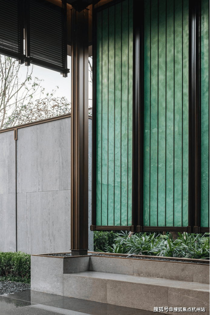 厅堂和轩堂,也在这番赏景过程中,毫不突兀地依次出现。前者还原出孔子树下讲学的场景,后者则用金属编织的卷帘搭配青绿色彩釉玻璃,构建出一个品茗厅琴的空间。这一切来得如此自然、连贯,富有节奏和层次,把园林艺术的本质抓得入木三分。