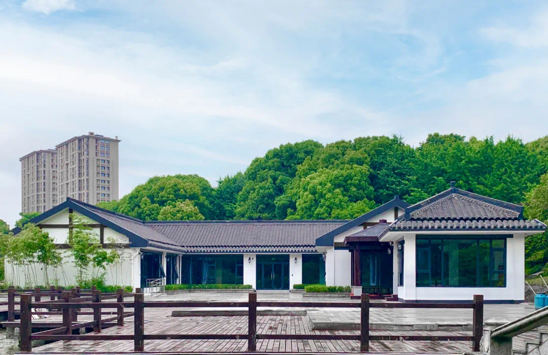 钱塘书房坐落在钱塘区学林街463号,高教园区东公园水面之上,庭院幽雅、古柏苍苍、翠色横流,芬芳馥郁,古朴典雅的气息扑面而来。