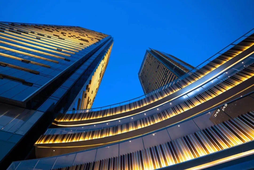 EFC缔造以约220米英国中心双子塔为首的12栋超百米的摩天集群,以国际超甲级写字楼的标准采用全玻璃幕墙外立面,打造蓝色晶状体切面外型,就像一座座水晶宫殿,彰显着金融城的奢侈格调,匠筑比肩世界的精工产品。