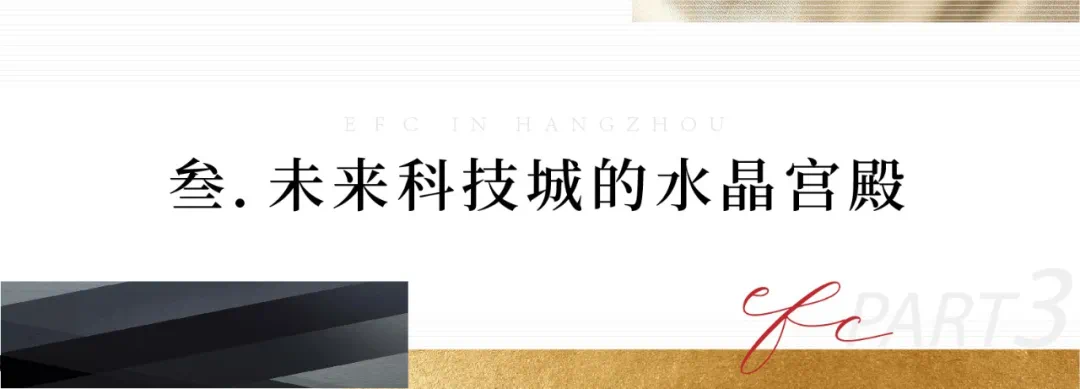 在杭州向着世界名城迈步的过程中,EFC移植硅谷文化和世界美学,作为杭州较大玻璃幕墙体量的综合体,无疑成为杭州展现给世界的一张烫金名片。