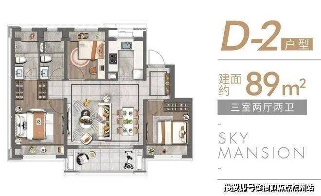 除了建面约89㎡的洋房,建面约83~89㎡高层户型也各有所长,均是三房设计,无论是从结构布局,还是空间利用皆相得益彰,承载一家人的美好生活。高层户型如下:
