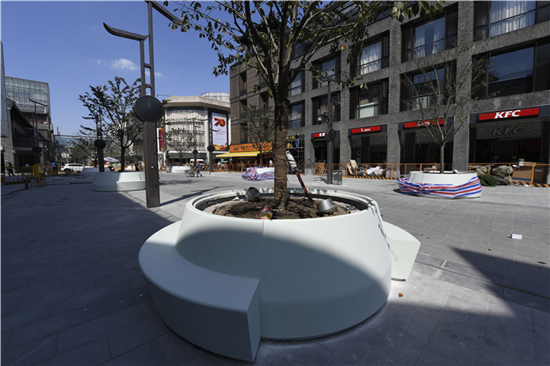 随着工期进入尾声,附近围挡已经逐渐拆除,步行街开始“显山露水”。