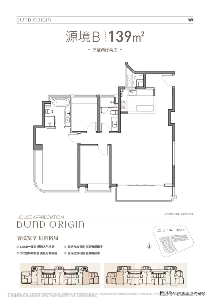 大横厅设计,3房2厅2卫格局,三开间朝南+LDKB一体化+奢阔宽厅+全卧室带飘窗+主卧套房设计+动静分离+主卧270度飘窗+弧形飘窗,舒适度更高。