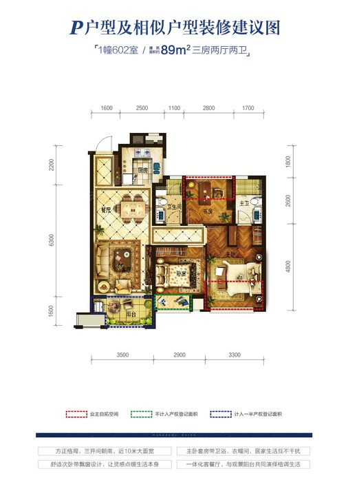西湖国际城的89方同样有三开间朝南和两开间朝南两种,其中中间套,也做到了3室2厅2卫,三开间朝南。总体户型结构两个项目比较相近。