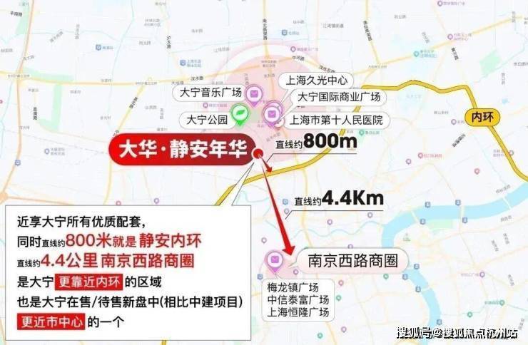 【大华·静安年华】 项目 可谓双王炸区位,直线800米贴脸静安内环,一脚油门就能杀进上海城市动脉,畅达全市核心节点;约4.4公里直插静安寺-南京西路心脏,直接把全上海顶流的繁华,变成你家的「日常生活」。