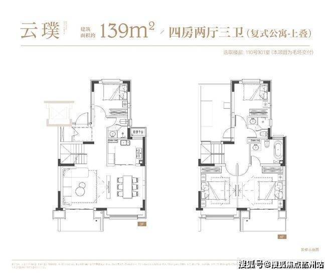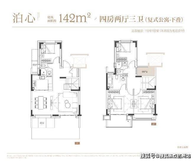 项目叠墅户型有建面约142㎡下叠,建面约139㎡上叠。