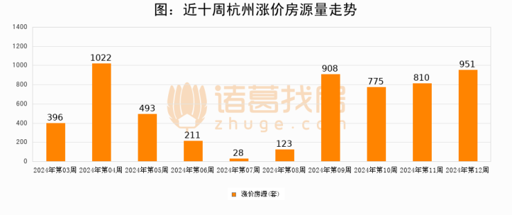 从调价房源来看,第11周杭州涨价房源951套,较上周上涨17.4%。与此同时,11周涨价房源占比提升0.23个百分点,业主信心持续恢复。