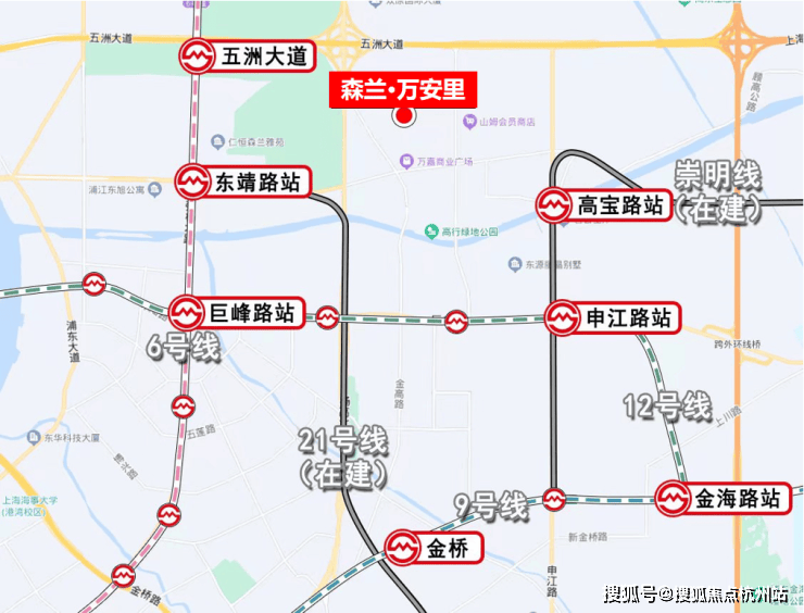交通配套:项目周边直线约2km范围内,未来将实现6号线、12号线、21号线(在建中)以及崇明线(在建中),4条轨道交通环绕左右。