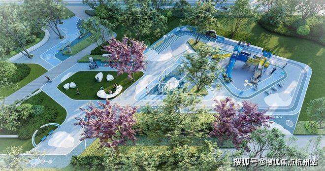从小区东门进入,是一条以“静”为主的横向轴线,串联起了云享客厅、云上茶吧&轻云花园区、和风花园等空间,设置了康体设施、休憩坐凳、户外办公等设施和功能;从小区南门进入,则是条以“动”为主的纵向轴线,连通了亲子乐园、乐动广场区域,整个小区一楼全架空,打造各色主题的活动空间,全龄、全天候、全时段的多元场景,契合社区生活的互动、陪伴、共享的生活所需。