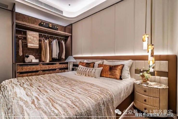 卧室则铺设海派鱼骨拼花地板,借木质肌理的温润与细腻,营造出私密领域的宁静氛围!这种“公区显质感、私域藏温度”的材质分区逻辑,恰是高端住宅设计中至关重要的一笔!