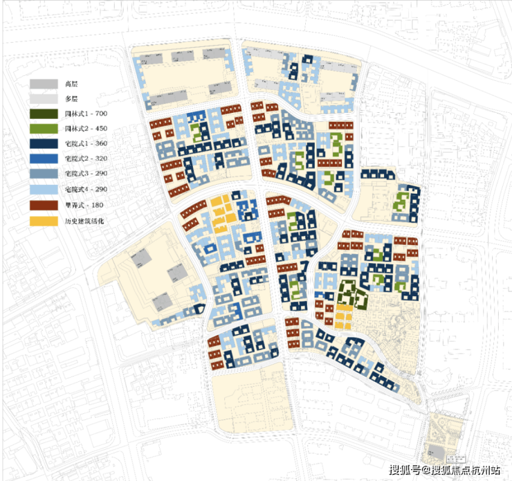建筑设计方面,由于整个项目非常庞大,所以每个组团之间各有区别,目前项目公布了A-2药局弄地块组团的设计过程稿,一起来看下: