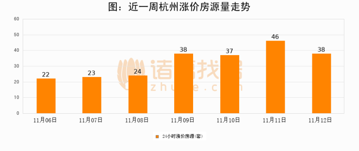 根据诸葛找房数据显示,杭州24小时涨价房源量为38套,较11月11日减少8套,环比下降17.4%。与此同时,涨价房源占比小幅回落,对于购房者来说是一个入市窗口期,购房者可抓住时机入市。
