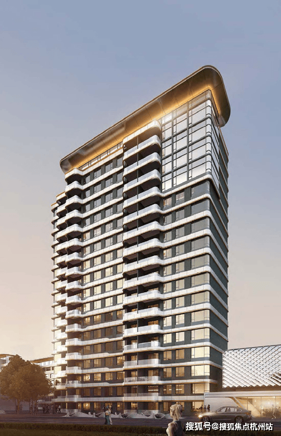 从图上来看外立面应该是铝板+大面积玻璃组成的,建筑顶部采用了市面上少见的弧形塔冠装饰,视觉效果比较丰富。