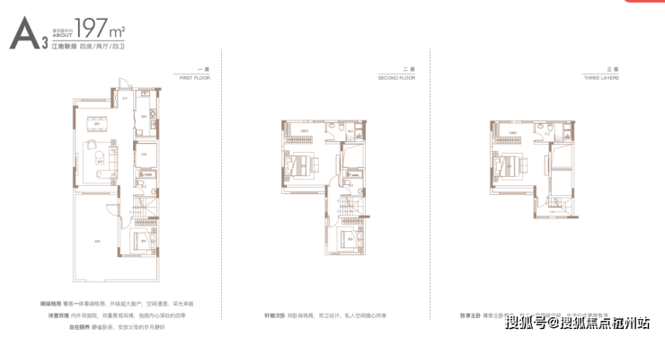 A地块的容积率最低,只有1.35,共有71套房源,由13套别墅和58套洋房组成,联排面积为196平,有独立的入户花园和地下附赠空间。洋房面积约97-198㎡。
