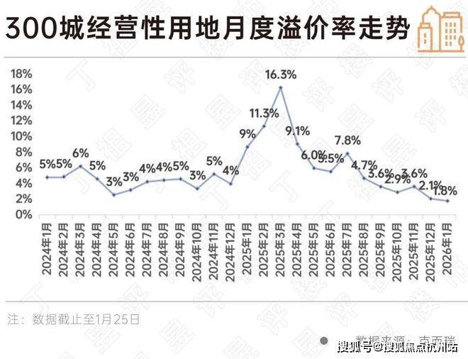 2026年1月所有城市土地成交金额均不高于50亿元,交易规模进入季节性低位。平均溢价率为1.8%,绝大多数10亿元以上的高总价地块均为底价成交。