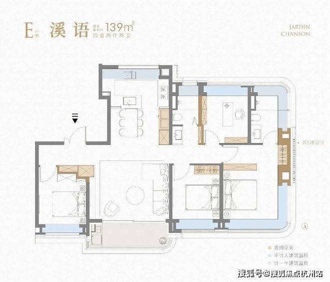 项目建面约139㎡4房则是集大成的终极改善户型。