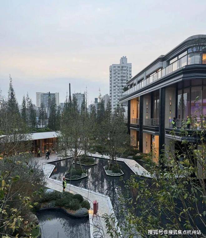 三层归家动线:从地面景观层到架空层,再到入户层,穿越绿植、光影与水景,步步进入私域。