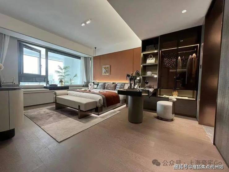主卧套房设计,贯穿南北,自带卫生间和衣帽间,还有大面积飘窗,舒适度和私密性双爆表!