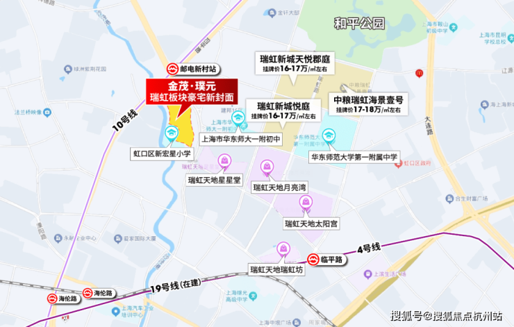 项目地处内环内瑞虹新城核心区域,这里坐拥内环罕见四轨交汇,4/8/10/19(在建中)轨交联动全城;