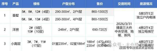 低密叠墅:户型建面290-400㎡,以五居为主,单价约3.2万/㎡,总价约380-825万/套。其得房率高达91%,采用创新性“双首层”设计,下叠附带私家花园,上叠配有星空露台,部分户型还设有独立电梯厅。