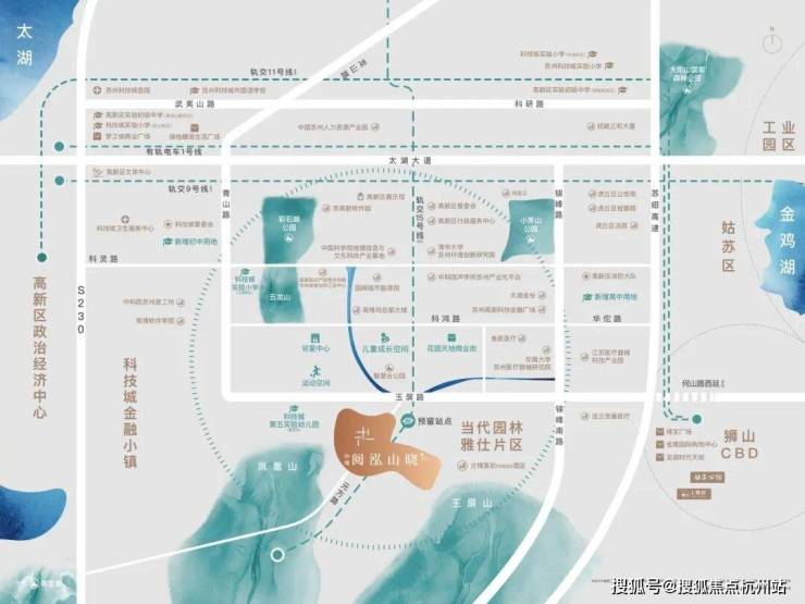 教育配套:1 公里内有苏科外附属幼儿园、科技城实小教育集团、新区实验中学青城山路校区,另有南京大学苏州校区在建。