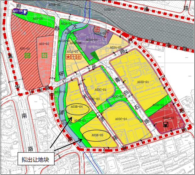 A03B-05地块东至礼贤路,南至礼泉路,西至A03B-03公共绿地,北至A03B-03公共绿地,出让面积13108.97㎡,容积率2.5,建筑面积32772.4㎡。